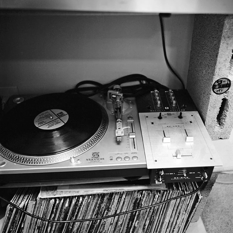 Rashid explains that getting access to producers all came down to connections, “I would make a short list of friends that I had and friends of theirs and then I would see if I could get a connection.” A shoot with DJ Shadow, secured after meeting him on tour, led to further introductions, enabling access through personal networks rather than formal channels. “Producers know producers, and that would keep rolling.” he said. Sometimes, a single shoot led to another, unplanned shoot later that same day, as was the case with Kenny Dope, who, accompanied by DJ Spinner, drove Rashid to Jazzy Jeff’s house, who lived four hours away.