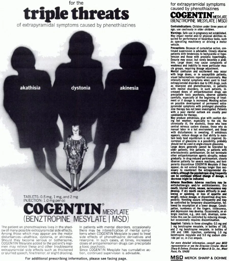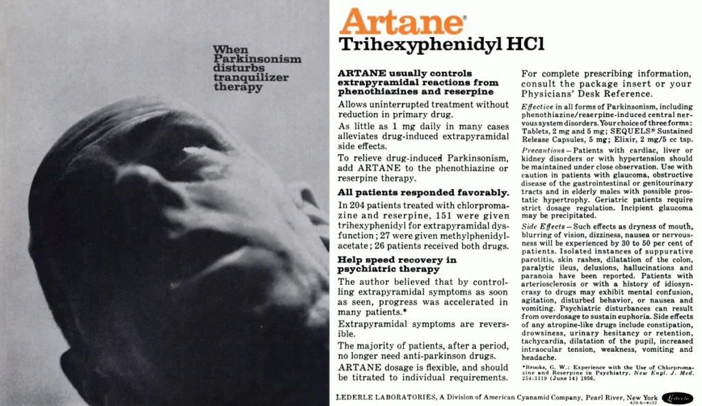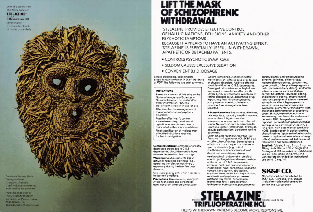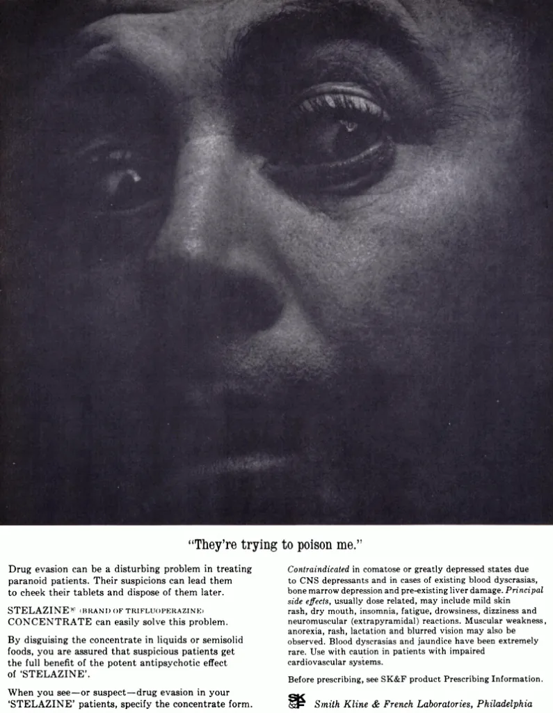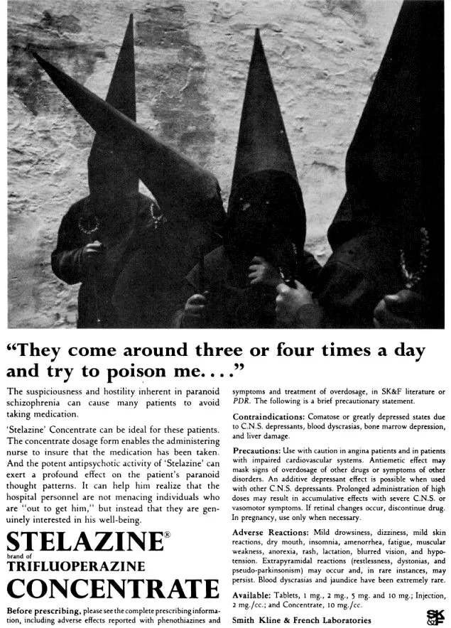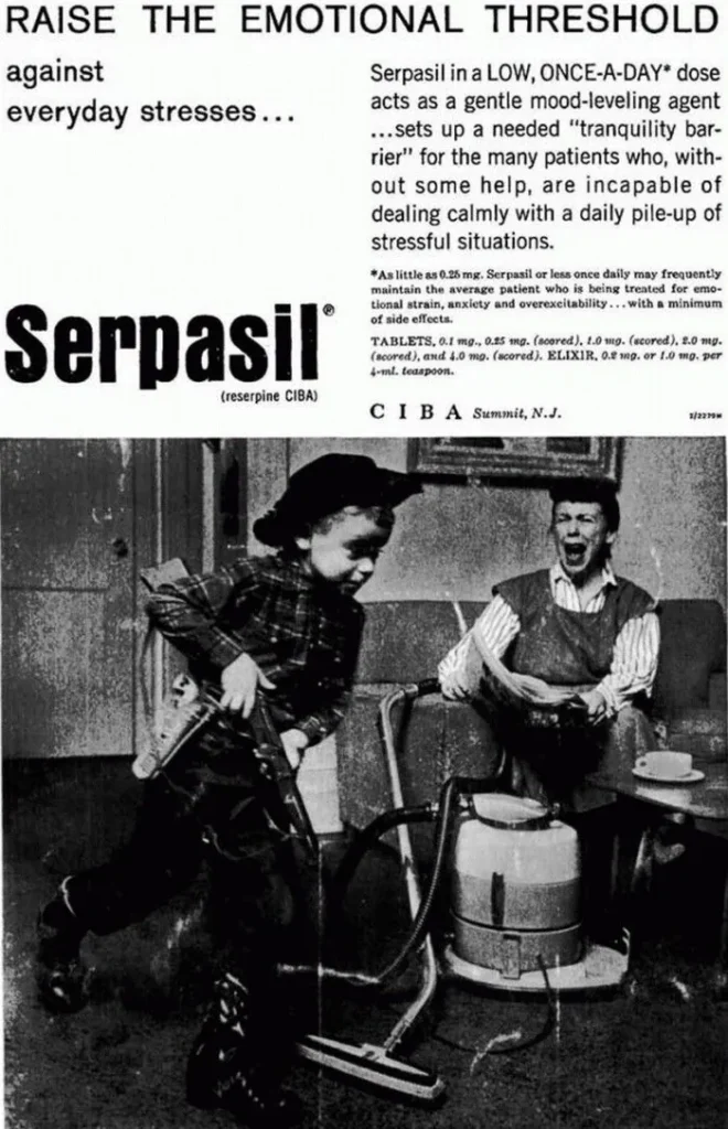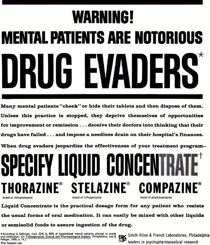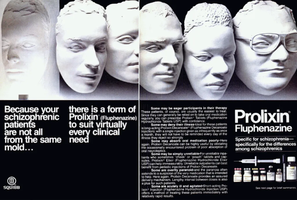 To understand why this earlier advertising took the tone it did, it helps to remember the medical and cultural context in which it was produced. Postwar psychiatry was still heavily institutional, hierarchical, and paternalistic. The dominant assumption was that doctors knew best, patients were largely passive subjects, and mental illness was something to be corrected, contained, or subdued. Advertising reflected this worldview. The patient rarely spoke; the physician was the implied protagonist. The image existed to reinforce authority, not invite dialogue.