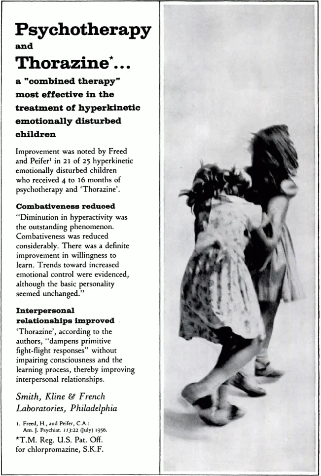 Thorazine’s arrival in the 1950s, often mythologized as the beginning of modern psychopharmacology, exemplifies this mindset. It was marketed less as a therapy than as a technological breakthrough capable of transforming institutions themselves. Ads implied shorter hospital stays, quieter wards, fewer restraints, and patients kept out of the hospitals in the first place. The emphasis was on efficiency, compliance, and control. In many cases, this was presented as humanitarian progress, even when the imagery suggested sedation as a substitute for care.