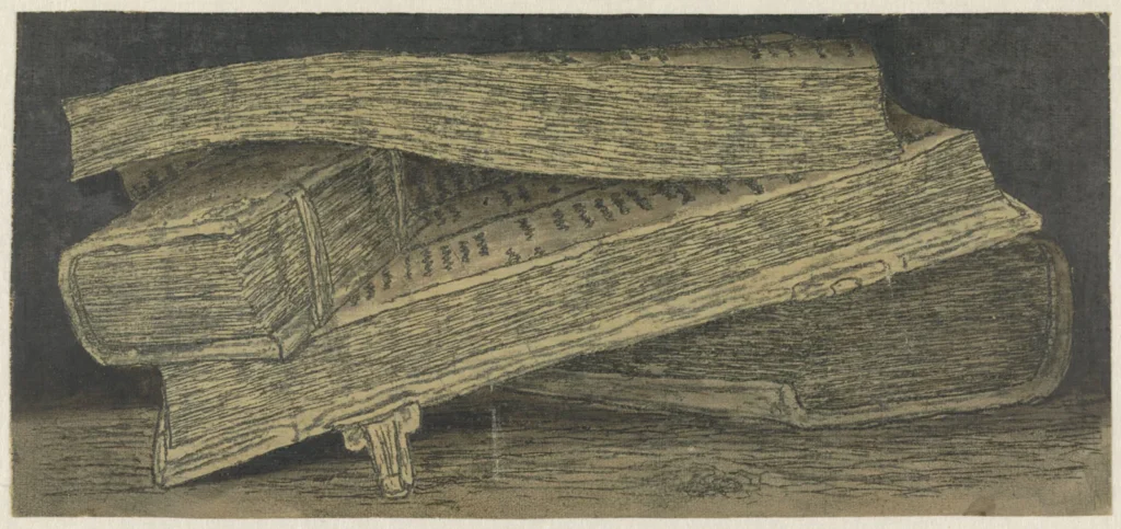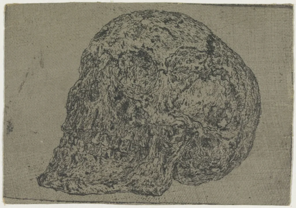 Seghers made several prints of religious scenes and still life, the most striking is a vanitas skull depicted in the same style as his cliffs, grotesquely intricate and seemingly conveying a feeling of dread and resembling more of a sculpture than anything usually seen from the artist. Another print depicts a stack of sagging, tawdry books, haphazardly piled on top of each other and opened to random pages, as if someone had been frantically reading them and heavily scrutinizing their contents before leaving in a hurry, the books left frozen in the middle of the act. This work is unique not only for Seghers but for art history as a whole, as art historians say this is one of the earliest depictions of still life in print form–the medium had been dominated almost entirely by landscapes at the time.