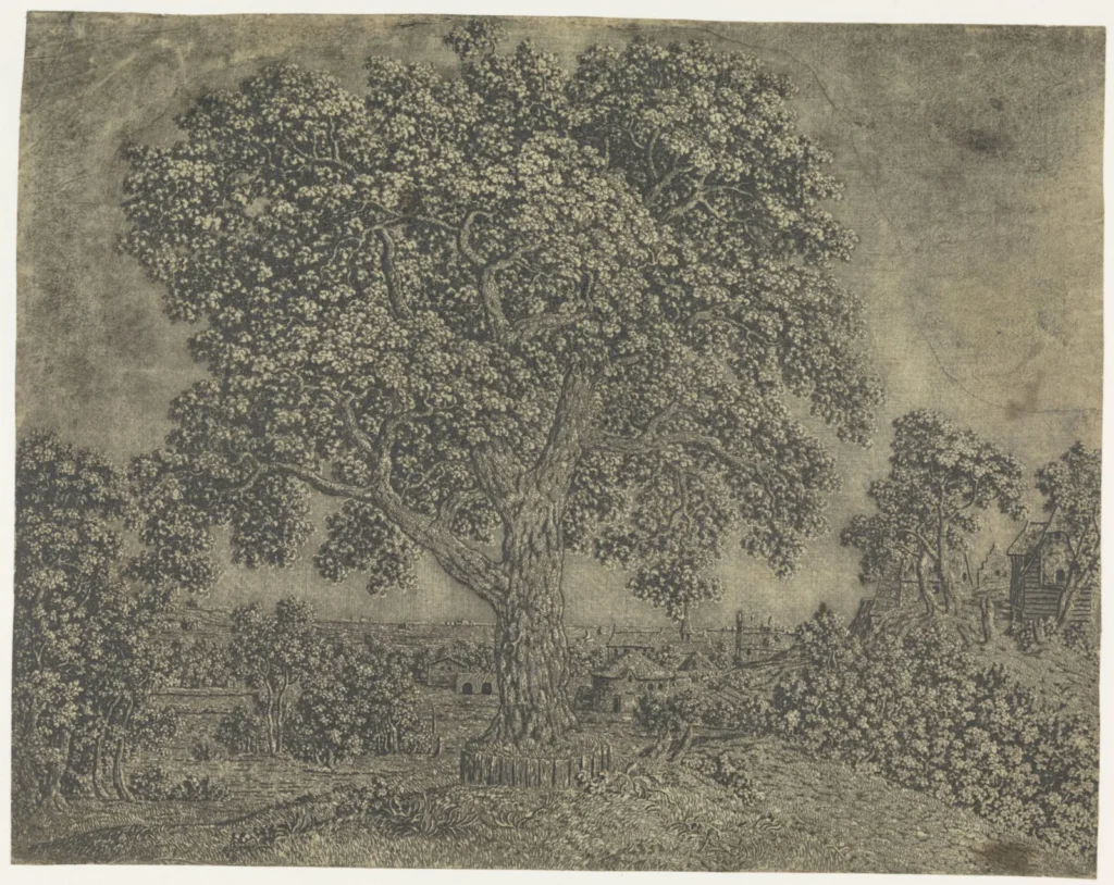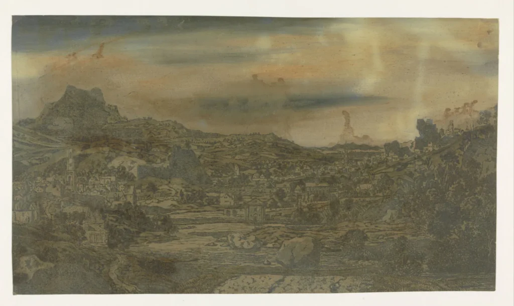 While Seghers is known to have been a painter in his own right — having made at least eighteen works, with six only recently having been identified after research was done on around 100 works suspected to be made by him — he is specifically known for his groundbreaking prints, which were rather accurately described by fellow artist and art historian Samuel van Hoogstraten as “printed paintings” in reflection of the fact that Seghers made every print of his unique by eschewing the strictly duotone aesthetics of Dutch printmaking and using a mixture of oils and watercolors to personally paint over each print in different colors, resulting in drastically different moods and time of day in each of the prints, predating the pop art experiments of Andy Warhol by three centuries. For example, Distant View with a Road and Mossy Branches was created in eight different versions alone.
