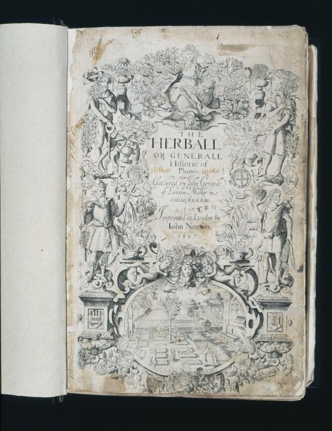 One deeply complex theory proposed by Mark Griffiths, a writer at Country Life magazine, was described by his editor as “the literary discovery of the century” and suggests that a book of plants published in 1597, John Gerard’s Generall Historie of Plantes contains the only known portrait of Shakespeare made in his lifetime on its cover, arguing his position through an interpretation of subtle symbolic elements around the engraving (the herbs, initials, motifs, etc.) such as the laurel wreath over the man’s head, suggested to be an allusion to Apollo, the Greek god of poetry and a common symbol for writers at the time.