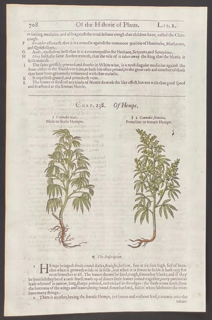 Cannabis sativa is said to have been introduced to England sometime during the Roman period and reached industrial-scale production during the Tudor era, becoming the nation’s second-most plant for cultivation following a mandate by King Henry VIII, according to Harvard Magazine. Although, it wasn’t for any kind of high. The plant was employed in the form of hemp for a variety of reasons including papermaking and canvas cloth as well as being twisted into rope (instead of joints), mostly for use on ships, due to their durability in resisting the effect of harsh seawater. After his death, Shakespeare’s First Folio was the world’s first attempt at collecting his works into a single book. Sure enough, the book was printed on hemp paper. Coincidence? A poetic one, certainly.