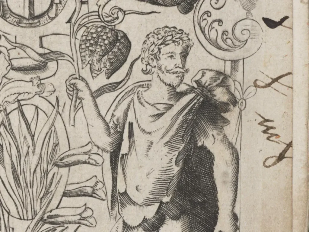 Others were quick to nip the theory in the bud and point out that the man is actually Dioscorides, a Greek doctor who lived between 40–90 AD and published a book on herbal medicine that remained the standard across Europe for the next 1,500 years. For the doubters, he’s even labeled as such in a reprint of the same book with the same frontispiece engraving, but we’ll ignore that detail for now because there are other men on the cover as well, and this is where it begins to get delightfully conspiratorial.