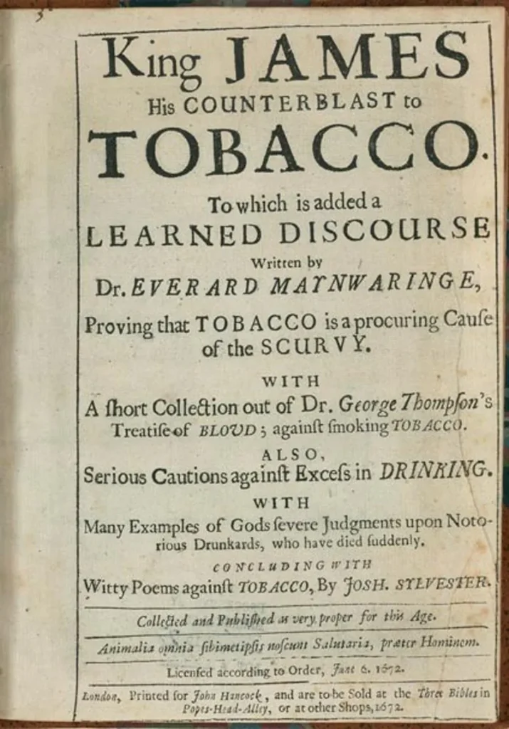 This is in large part because the use of hallucinogenic stimulants and other intoxicants short of alcohol was met with condemnation from both royal and church authorities alike and likened to witchcraft in an official decree against cannabis by Pope Innocent VIII in 1484. Any writer who risked mentioning it or any other outside source of inspiration likely had their work destroyed. At the time, Pope Urban VII even threatened with excommunication anyone who consumed tobacco in or near a church while King James I wrote an entire treatise against tobacco, implying that it may lead to sterility and possession by the devil. The original devil’s weed.
