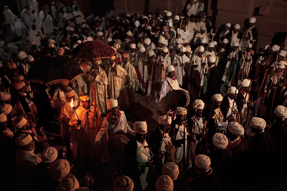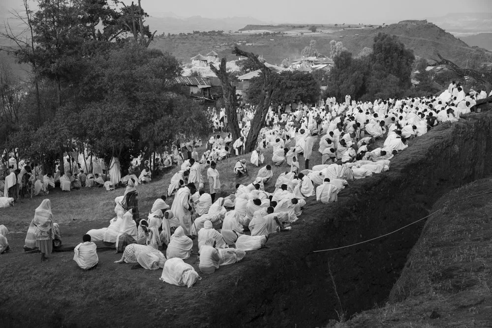 The churches remain open for worship throughout the year, but during major religious festivals the scale of pilgrimage becomes extraordinary. On Christmas Eve, for example, enormous crowds gather around the rock-hewn sanctuaries. At one such celebration nearly 200,000 pilgrims assembled, descending through the narrow pathways and trenches that lead down into the churches carved below ground level. Many had walked for days or weeks, fasting along the way and dressed in traditional white garments. The journey itself echoes the ascetic traditions of early Christianity, where hardship and endurance were understood as spiritual discipline.