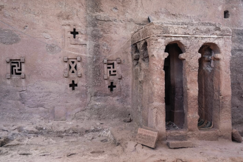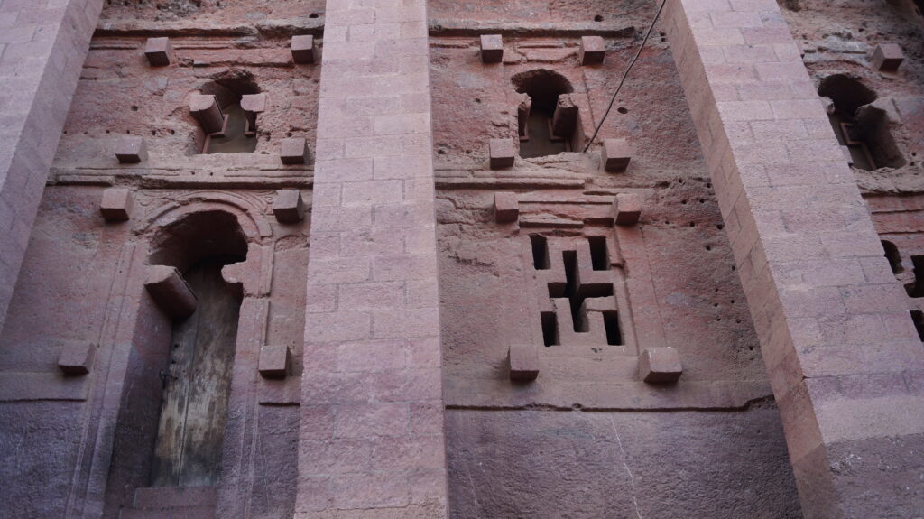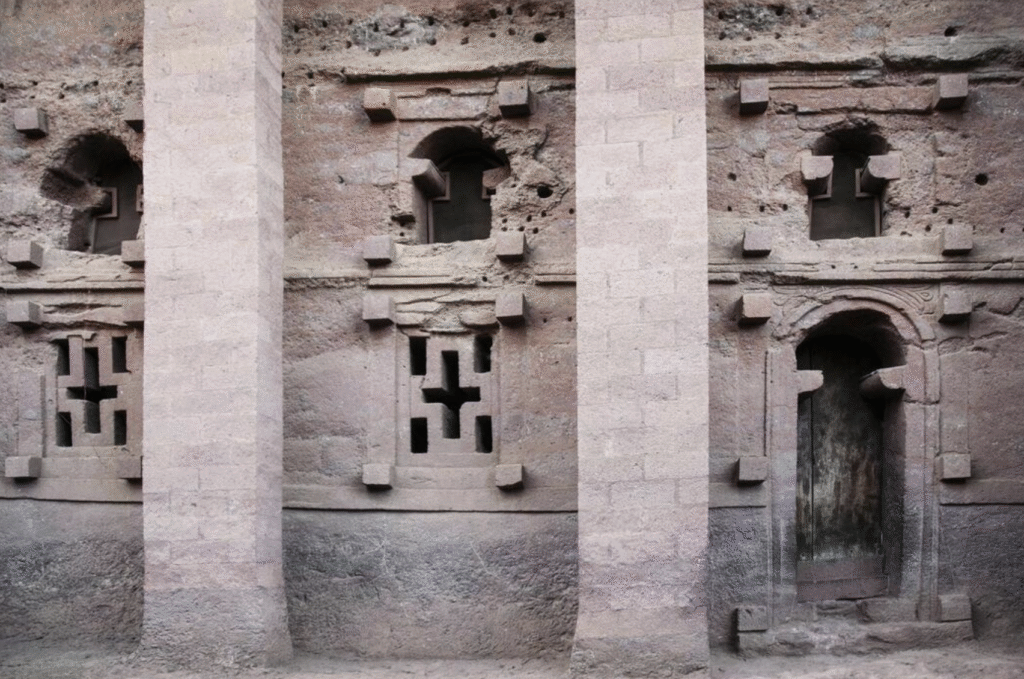 The method offered one major advantage: because the building mass remained attached to the surrounding bedrock during excavation, there was no need for scaffolding or external supports. At the same time, the approach required extraordinary precision. A mistake made while carving could not easily be corrected; removing too much stone would permanently alter the structure. The architectural forms found at Lalibela draw on much older traditions.