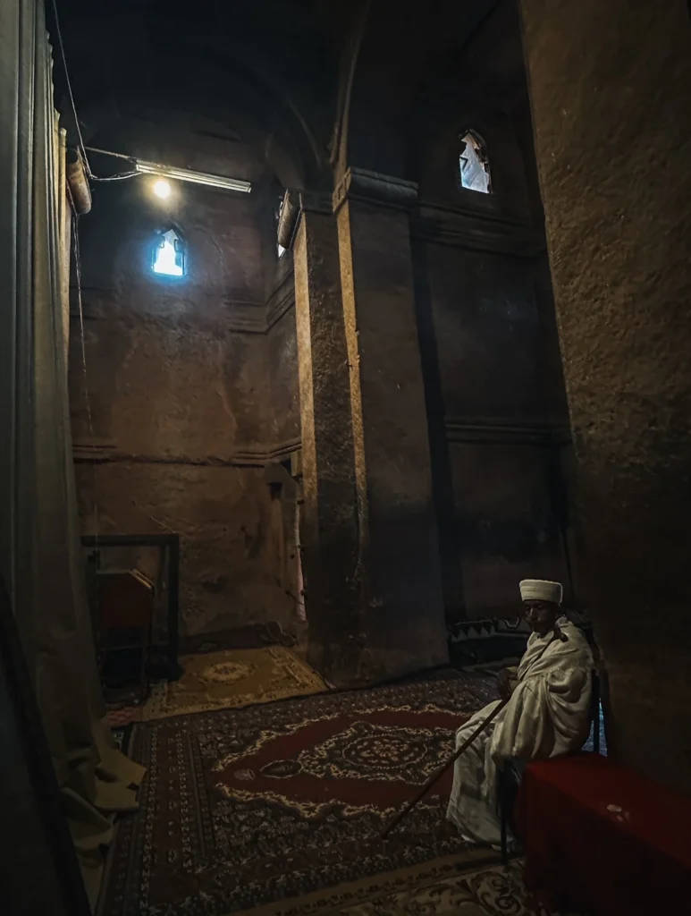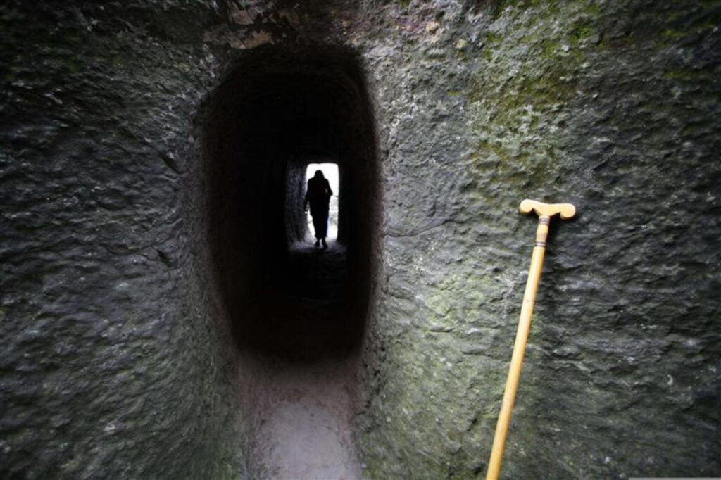 Hermit cells have been carved into the surrounding rock walls, and niches in the stone now contain human remains, evidence of monks and pilgrims who chose to be buried in what they regarded as Ethiopia’s “holy city.” Remarkably, some of these bodies have undergone natural mummification. As one local priest explained to visitors: “Their bodies didn’t experience any decay but merely dried up.” In several cases fragments of skin remain visible, the preservation of these remains reflects both the dry conditions within the rock chambers and the longstanding monastic traditions associated with Lalibela.