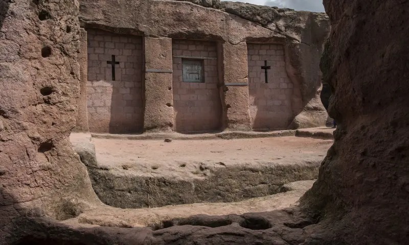 Local tradition offers additional explanations for why the churches were excavated downward into the rock rather than built above ground. One suggestion is practical: during periods of conflict, visible churches were vulnerable to destruction, whereas structures hidden below the surface could remain protected. Another explanation connects the design to biblical symbolism. According to local guide Workeye Desale Alemu, King Lalibela may have been inspired by the accounts of Jesus Christ being born in a cave at Bethlehem and buried in a rock-cut tomb at Golgotha.