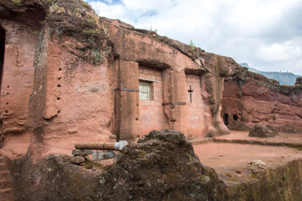 Connected to it is Biete Mikael, sometimes referred to as the Church of Mount Sinai or Saint Michael. The structure mirrors the general form of its twin but contains distinctive architectural elements of its own. Inside are cruciform pillars, unique among the Lalibela churches, along with numerous carved crosses decorating the stone surfaces. The church stands roughly 11.5 metres high and rests upon a base reminiscent of the tiered architectural style associated with the ancient Ethiopian capital of Aksum. Visitors reach the entrance by walking along a trench and climbing a narrow series of steps cut directly into the rock.