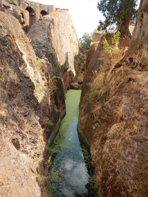 The churches, though connected through narrow tunnels and corridors, are separated by a small stream, the Yordanos, running through the site that was deliberately named after the Jordan River that flows through the original city of Jerusalem, while a nearby hill was named Debra Zeit in reference to the Mount of Olives, reinforcing the symbolic geography of the place. Those on one side of the river represent the earthly Jerusalem; those across the water symbolize the heavenly Jerusalem described in the Bible, the radiant city of jewels and golden streets awaiting the faithful.