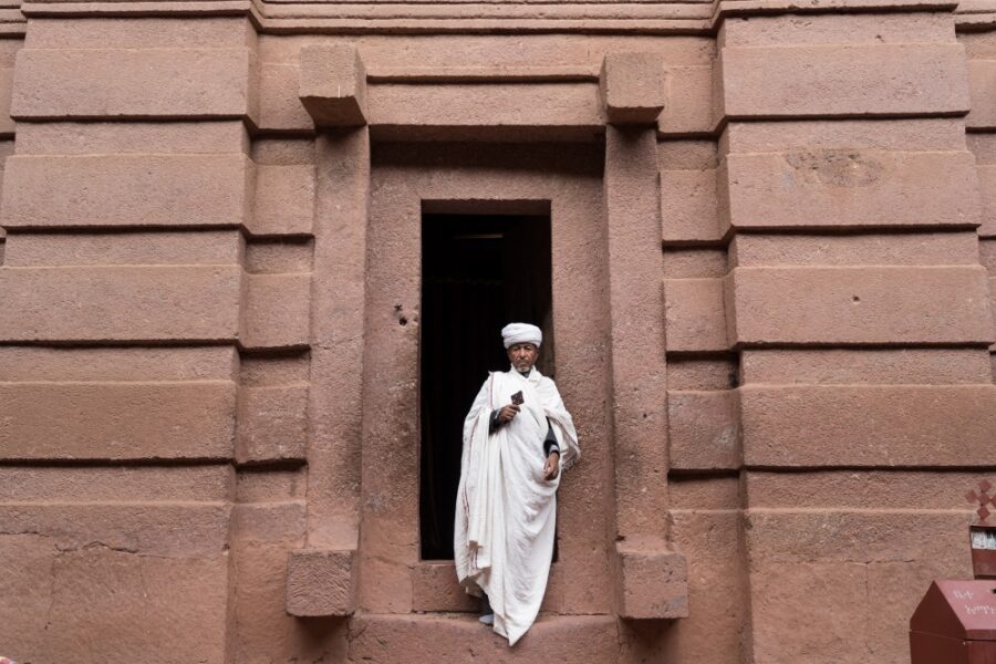 Near the rock-hewn churches lies the modern town of Lalibela itself, where everyday life continues alongside one of Christianity’s most remarkable sacred landscapes. The surrounding village is characterised by distinctive homes known as Lasta Tukuls, two-storey round houses constructed from the same reddish volcanic stone that forms the bedrock of the churches. Roughly 20,000 people live here, including a large community of priests, monks, and families whose lives remain closely tied to the religious life of the complex.