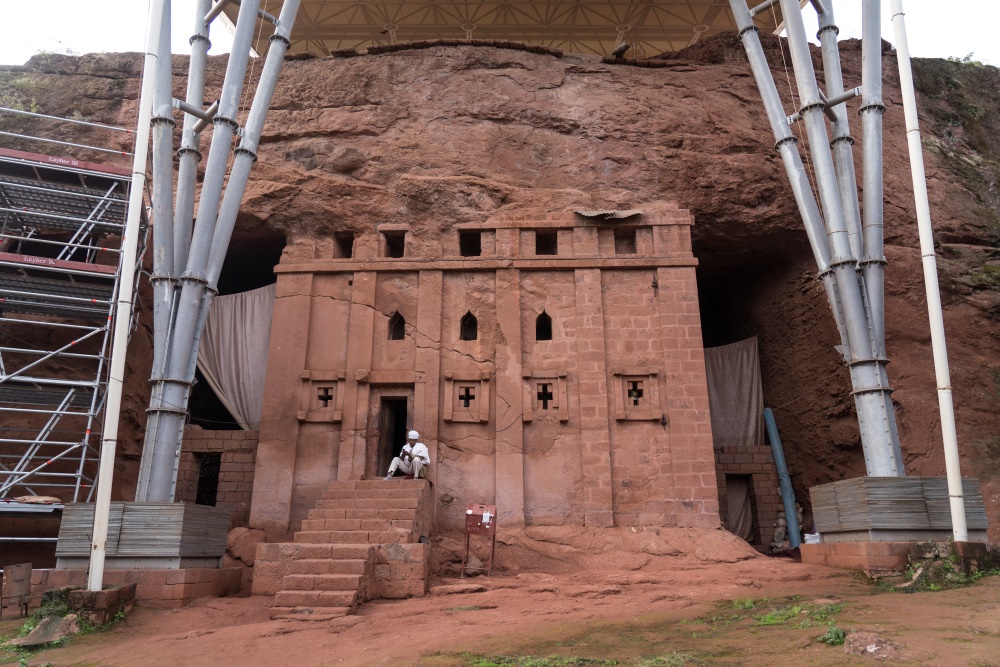 Efforts to address these threats have taken place over several decades. Between the late 1980s and early 2000s, restoration projects funded by the European Union attempted to stabilize many of the churches through drainage improvements and structural reinforcement. Engineers injected grout into cracks within key buildings such as Biete Medhane Alem, strengthening weakened sections of stone and improving underground drainage channels to redirect water away from the foundations. These measures helped prevent immediate collapse in several areas of the site.