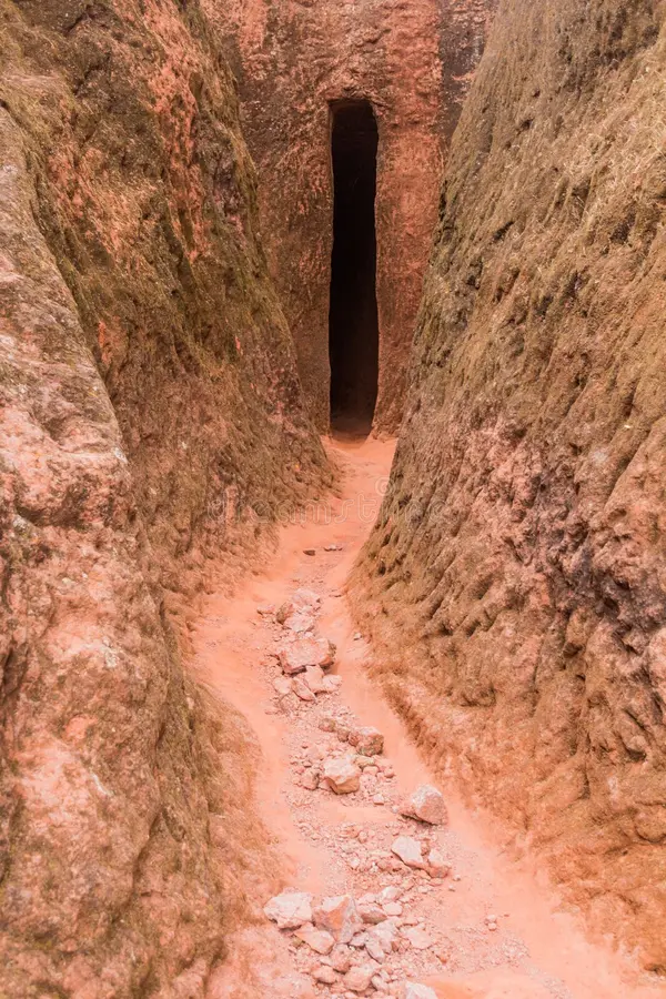 After the necessary outer walls, roofs, and decorative elements were defined, they hollowed out the interior spaces, creating columns, chambers, and passageways, working inward from the surface. Some of the largest structures reach nearly forty feet in height when measured from the floors of their sunken courtyards. In every case, the structures are enclosed by sheer vertical rock walls. Access is provided through a network of trenches, tunnels, and courtyards that link the churches together. These pathways guide visitors along carefully controlled routes, shaping the way the complex is experienced and revealing each church gradually and dramatically.