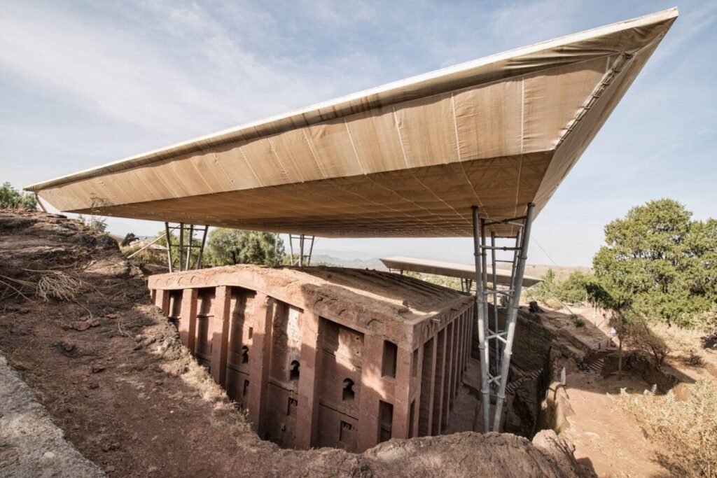 Several churches, including Biete Medhane Alem, are partially shielded from the elements by large slabs of sheet-metal roofing installed in 2008 as part of a €9.1 million conservation project funded by the European Union and overseen by UNESCO to slow further erosion. The solution is functional but visually intrusive, and it has become one of the most controversial preservation measures at the site. Critics argued that the shelters clashed visually with the ancient rock architecture and failed to provide adequate ventilation, trapping humidity beneath the roofs and inadvertently contributing to further deterioration.