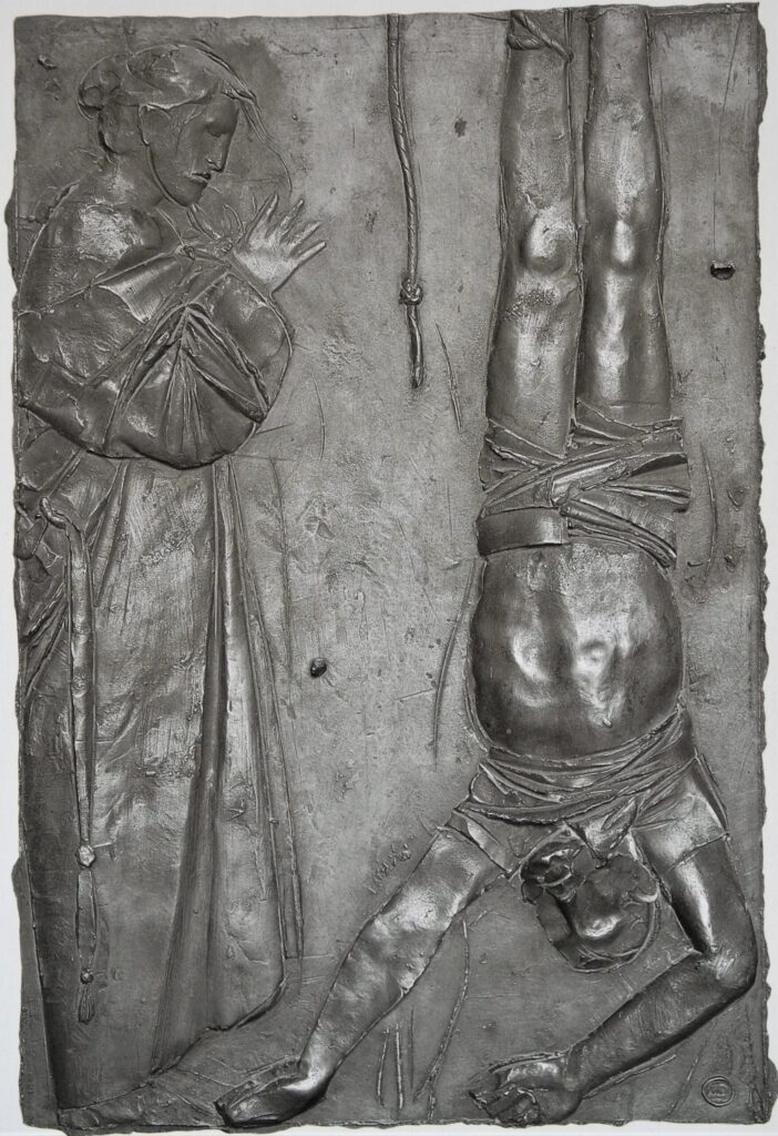 Another alludes to anonymous deaths in war and modern catastrophe, a visual reference to the violent political and social reckonings of Italy at that time. Despite the protests of some clergy, Manzù maintained his creative vision, even denying the request of one prelate to include latin inscriptions to accompany the images of Christ, Mary, and the saints, stating “I can’t put words on these panels. This is not a comic strip.”