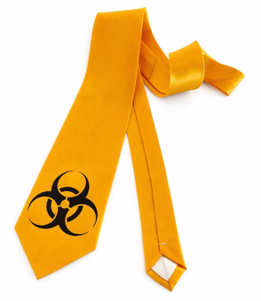 Charles Baldwin, the Dow Chemical engineer, was steadfast in his belief in the symbol’s importance, once rejecting the gift of a tie with the biohazard symbol emblazoned on it in recognition for this efforts, believing it would trivialize the symbol to be used even in this way. To him, it was a warning, not an ornament. Unfortunately, others are not so principled and that distinction has not survived particularly well. Like many powerful images, the symbol has been absorbed into broader visual culture, where it functions as much as aesthetic shorthand as it does as a marker of genuine hazard.