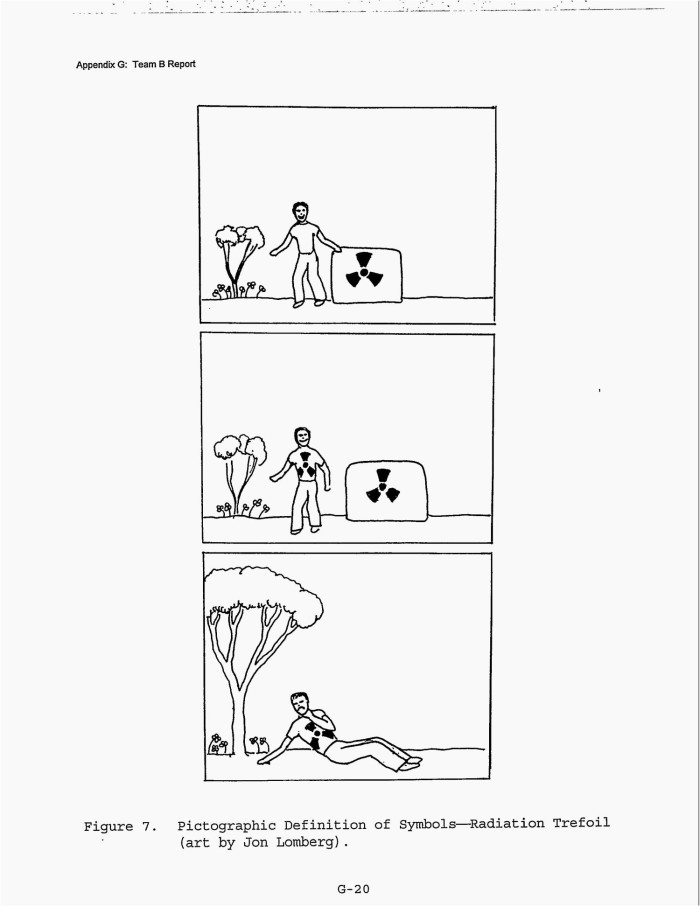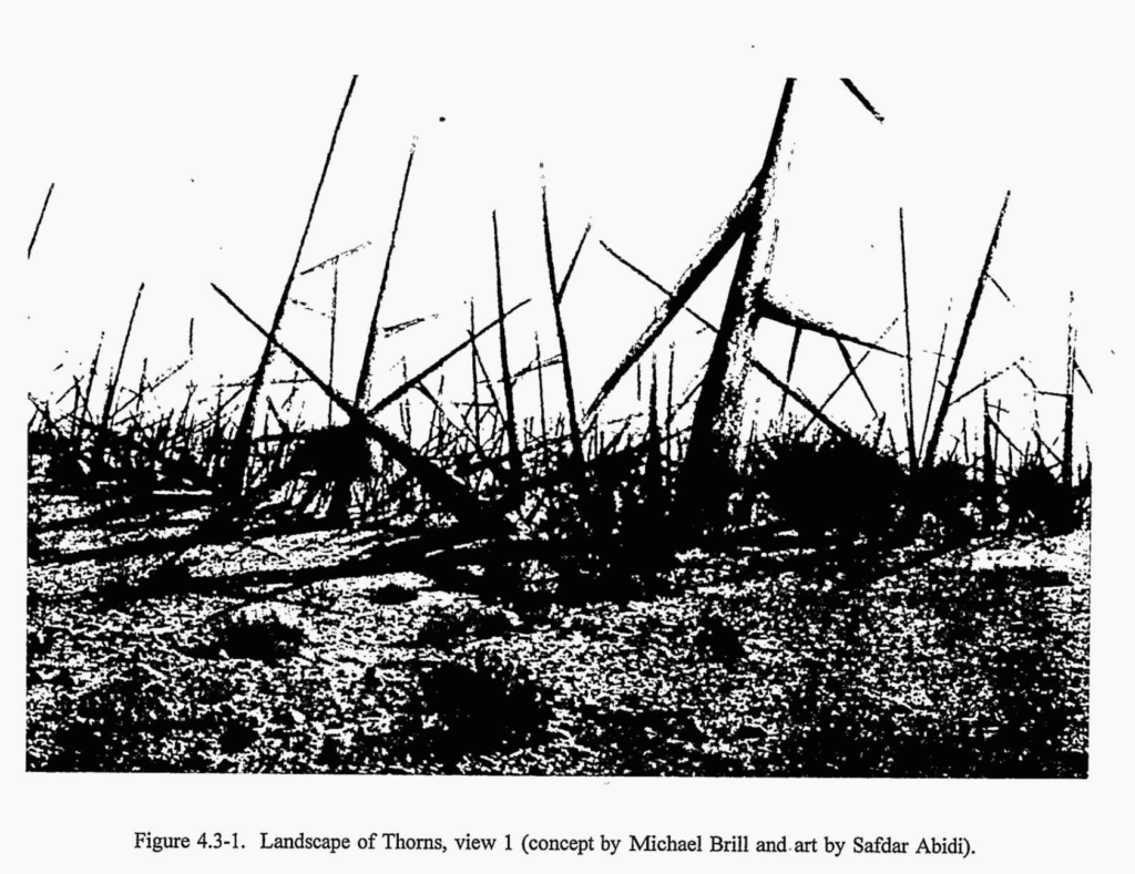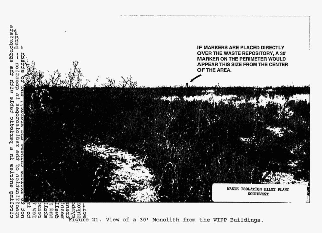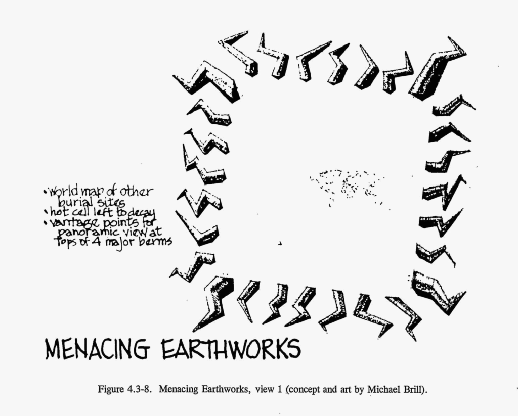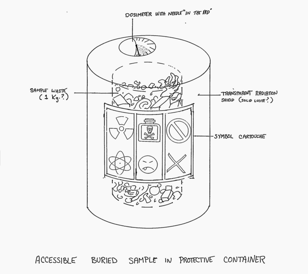 For this reason, the original panel convened by Sandia National Laboratories to develop warning systems for the Waste Isolation Pilot Plant was skeptical of involving the art world. Jon Lomberg argued strongly against it, remarking that he would “die before I’d let the art world come anywhere near this,” saying that, “the art world in places like New York is anti-scientific, anti-representational, and seems to favor more detached and nihilistic statements; if you involve the art community in this process, they are likely to end up picking a giant inflatable hamburger to mark the site.”