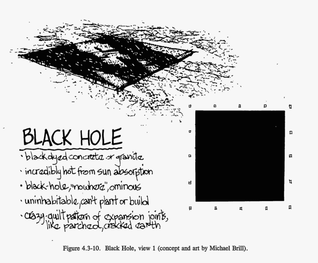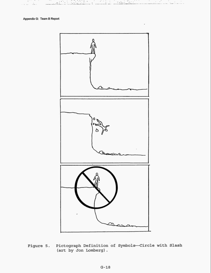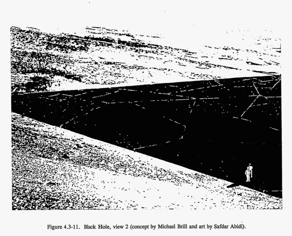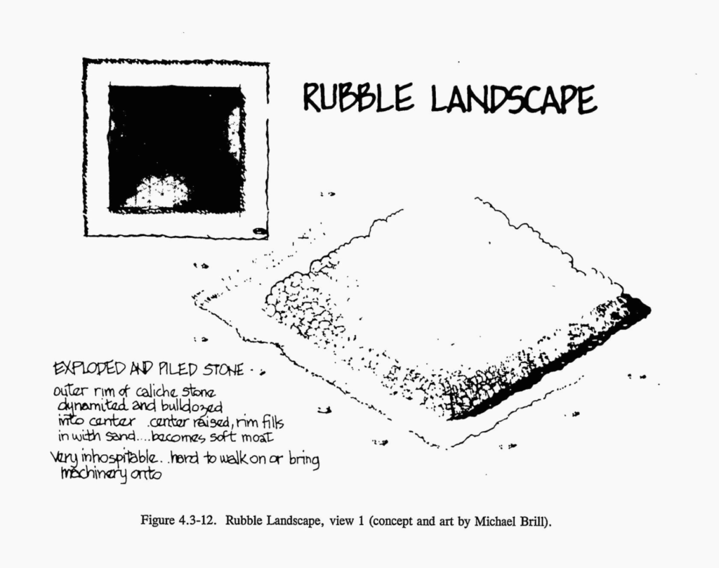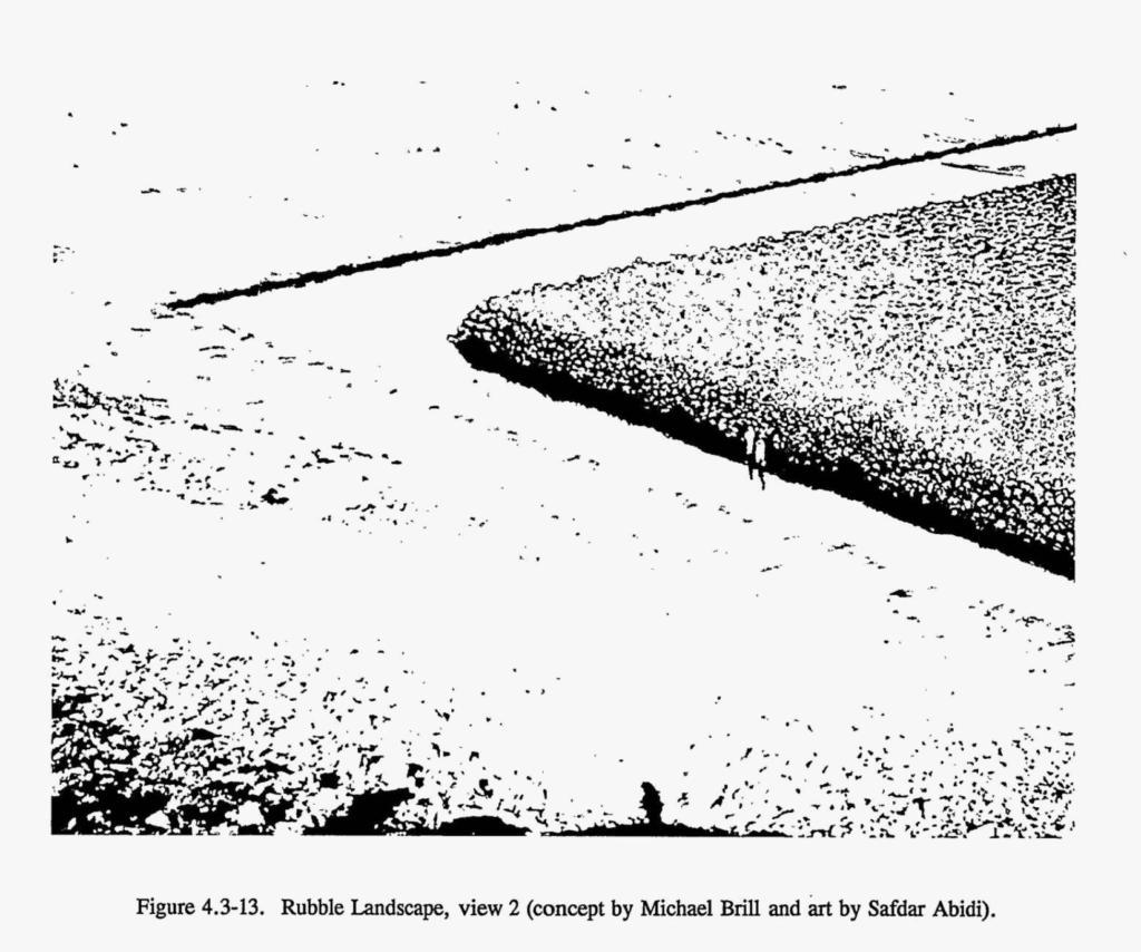 For this reason, the original panel convened by Sandia National Laboratories to develop warning systems for the Waste Isolation Pilot Plant was skeptical of involving the art world. Jon Lomberg argued strongly against it, remarking that he would “die before I’d let the art world come anywhere near this,” saying that, “the art world in places like New York is anti-scientific, anti-representational, and seems to favor more detached and nihilistic statements; if you involve the art community in this process, they are likely to end up picking a giant inflatable hamburger to mark the site.”