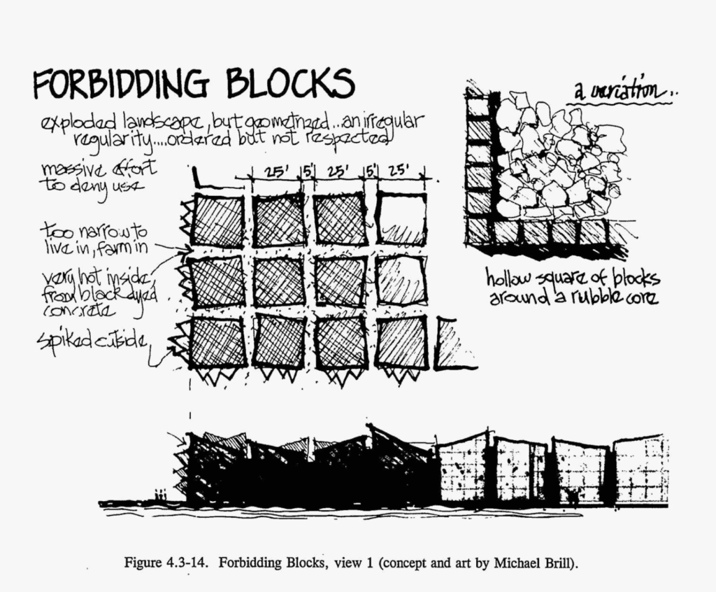 Other finalists explored more speculative approaches. Some proposed displaying radioactive material encased within large salt cubes placed above ground, turning the waste itself into a visible warning. Another design envisioned a massive perimeter wall built from volcanic basalt surrounding the 16-mile site, filled with boulders that would gradually erode and slip outward into the surrounding landscape over time, eventually becoming part of the geological strata.