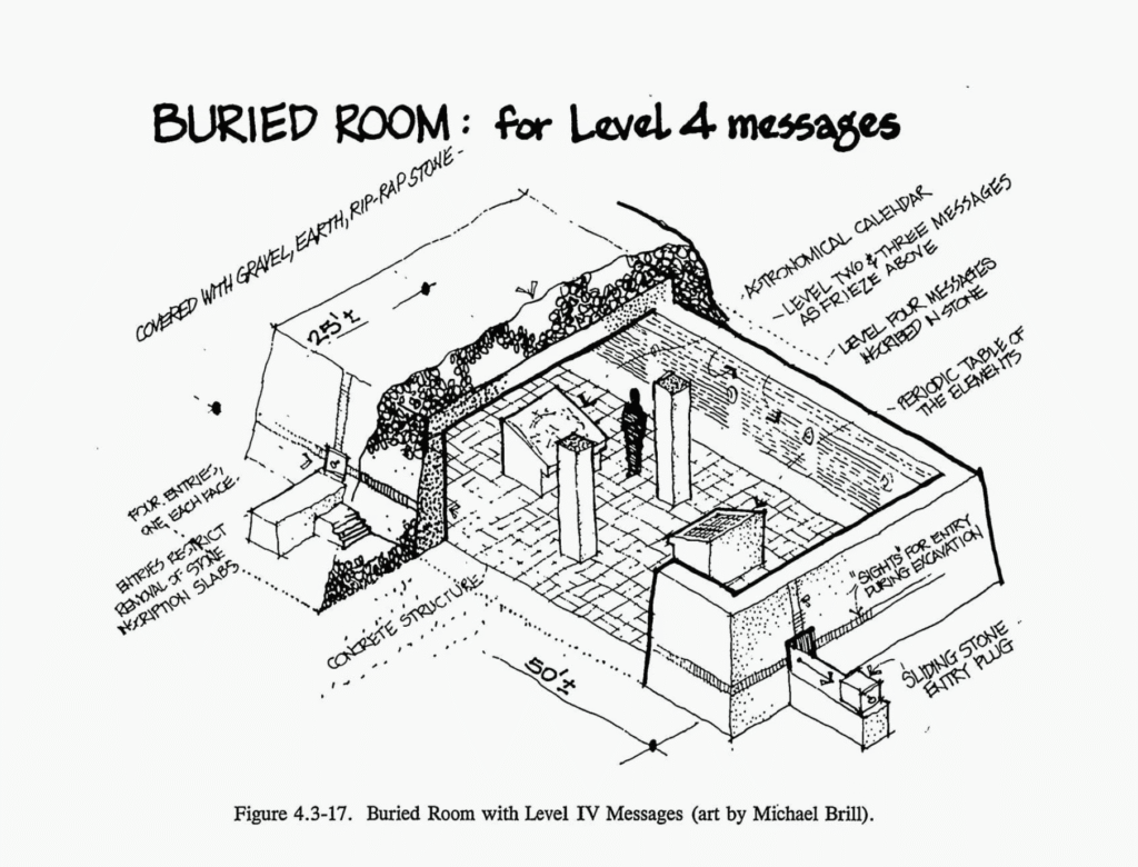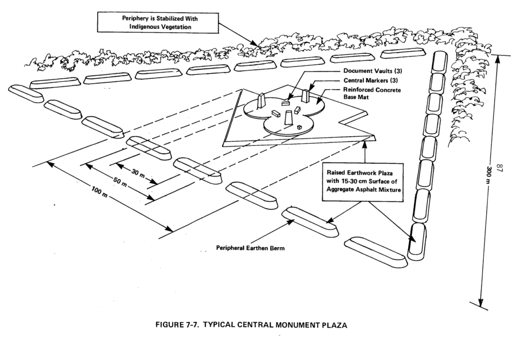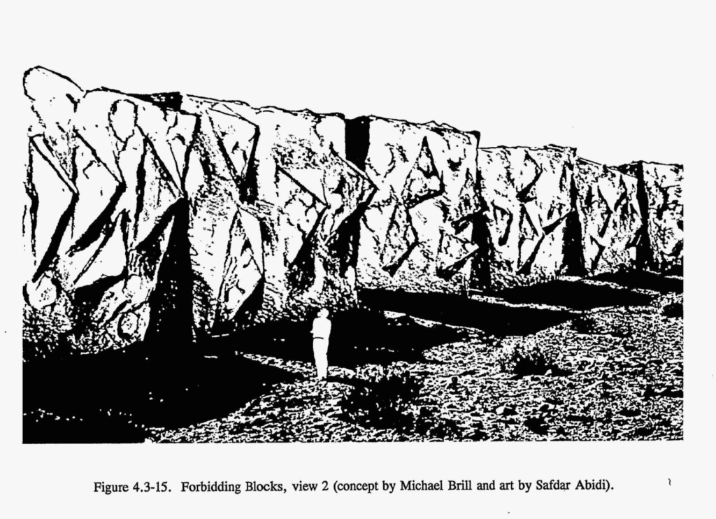 Design discussions nevertheless continue. The current idea of gigantic granite blocks meant to frighten future visitors has begun to fall out of favor. Some critics describe it as a “classic American solution”, very large, but also visually crude, and warn that unattractive monuments may simply be vandalized or dismantled by future inhabitants.