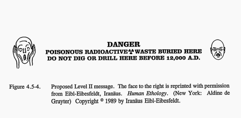 The problem quickly expanded beyond engineering. Alongside scientists and technical experts, the task force included an archaeologist, a linguist, and a specialist in nonverbal communication. Their work approached the challenge as a problem of semiotics, the science of signs and symbols, and eventually helped establish a niche field sometimes referred to as nuclear semiotics: the study of how to communicate radioactive danger across deep time.