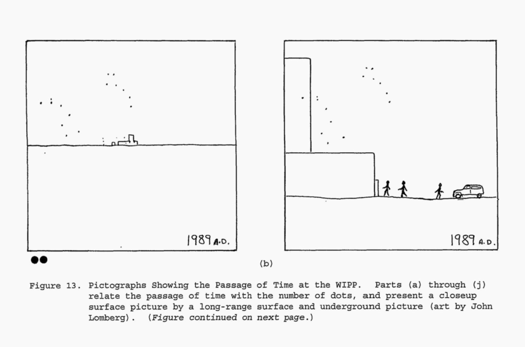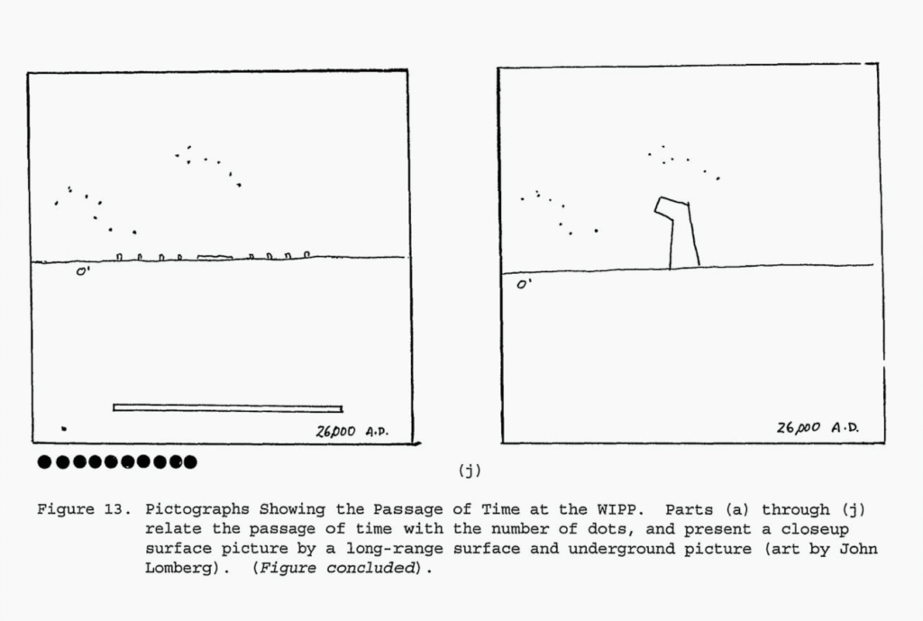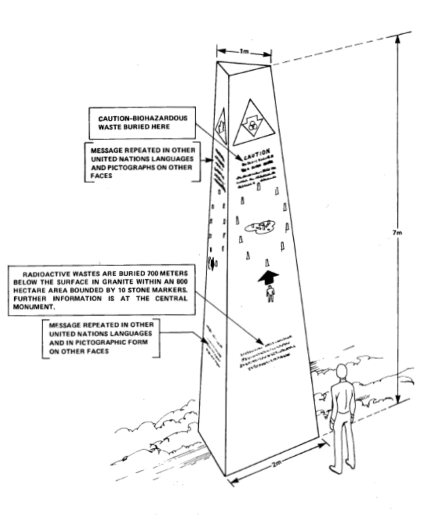 This tendency for symbols to drift away from their original purpose presents a serious problem for nuclear waste. Any warning marker placed above a repository would need to remain undiluted and unqestionably understandable for at least 10,000 years, a span of time far beyond the lifespan of modern languages or political systems. In such a future, it’s likely that all of our present-day alphabets, icons, and cultural references will be as opaque as ancient hieroglyphs or cuneiform tablets are to most people today.
