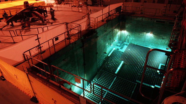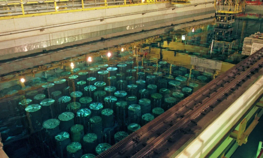 At each of the country’s nuclear reactors, more than a hundred in total, there are enormous spent fuel pools, often comparable in size to Olympic swimming pools. Freshly removed fuel rods are lowered into these water-filled basins and left there for five to ten years. The water acts as both a coolant and a shield, absorbing the intense radiation still pouring from the fuel.