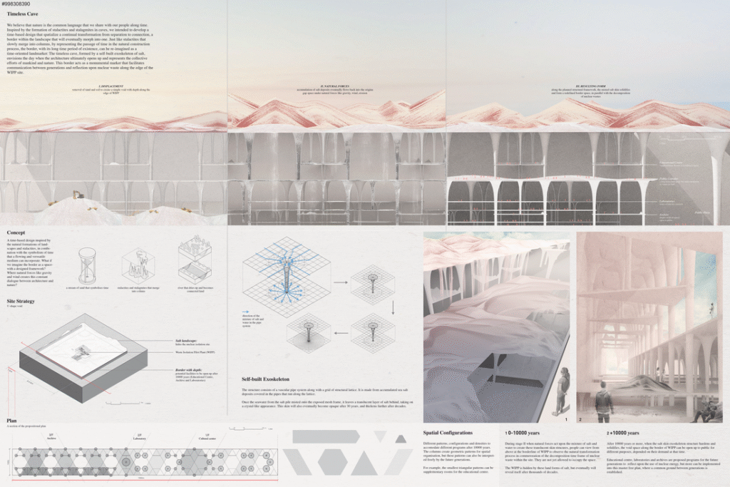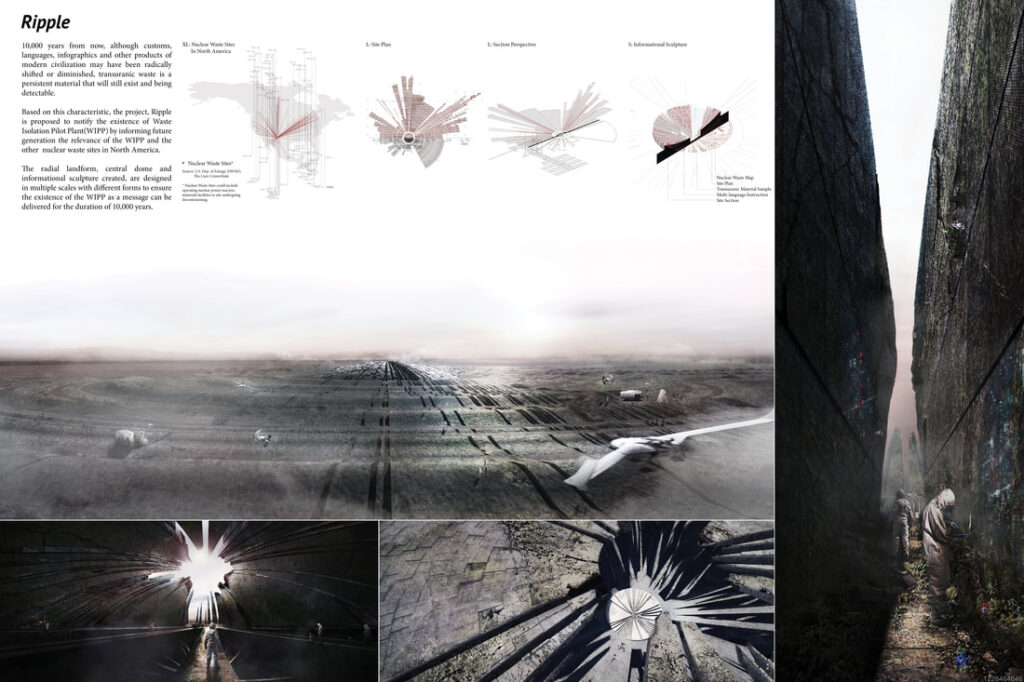 Later competitions continued to explore how a warning for deep time might look. In 2017 the architectural research initiative Arch Out Loud organized an unofficial competition to design a landmark for the nuclear waste repository in New Mexico, open to international entries. Participants were asked to imagine a piece of architecture capable of standing for 10,000 years, warning future generations about the unstable by-products of nuclear weapons production buried 2,150 feet beneath the surface at the Waste Isolation Pilot Plant (WIPP).