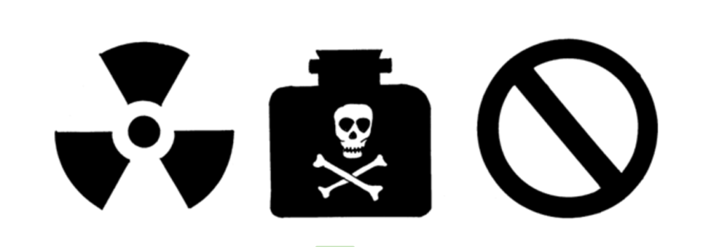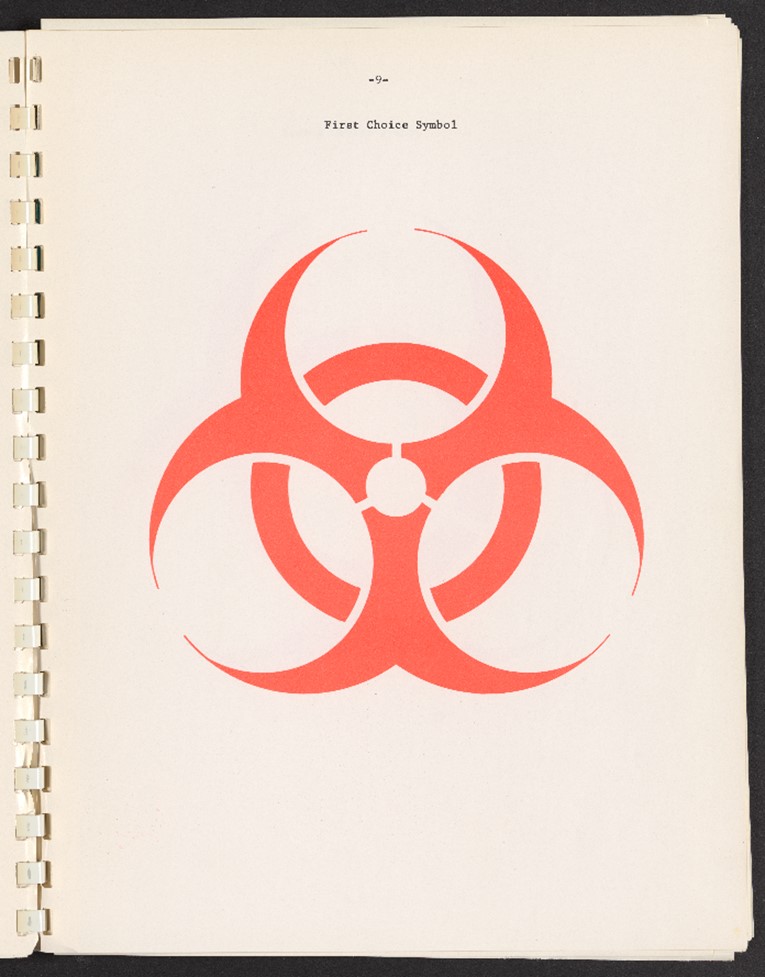 Whatever its origin, the trefoil quickly became the emblem of the nuclear age. The design: simple, bold, and originally pink against a purple background (in contrast to the more famous black on yellow, which was only officially adopted in 2011), it was intended to signal invisible danger in places ranging from research laboratories to remote testing grounds. But nuclear technology was new, and the symbol had no cultural history behind it. Even today, many people encountering it for the first time have no immediate sense that it signals danger. To someone unfamiliar with its meaning, the shape can look less like a warning than a simple road sign. Designers had already confronted a similar challenge in another field: biological hazards.
