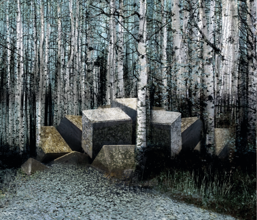 Some projects unintentionally echo earlier concepts developed during the American nuclear semiotics studies of the 1980s and 1990s. In 2016, the architectural duo Les Nouveaux Voisins won ANDRA’s prize with a proposal resembling a contemporary Stonehenge. Their design envisioned eighty concrete pillars, each about thirty meters high, planted above the repository. Oak trees would grow from the tops of the pillars; as decades passed, the pillars would slowly sink into the ground while the trees matured, gradually replacing the concrete structures. The result would be a long-lasting alteration of the landscape, visible above ground while leaving traces beneath the surface.