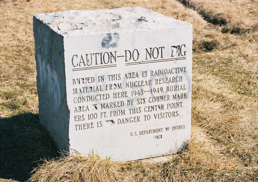 The pile itself did not last long. In 1943 CP‑1 was dismantled and moved to Red Gate Woods, outside Chicago, where it was rebuilt with shielding as CP‑2. A third experimental reactor, CP‑3, followed soon after. When the Manhattan Project no longer needed them, the structures were taken apart and buried nearby at two locations known as Site A and Plot M. Today the spots are marked only by modest granite monuments. Plot M carries a blunt inscription, for now still understandable to nearby inhabitants: “DO NOT DIG”.