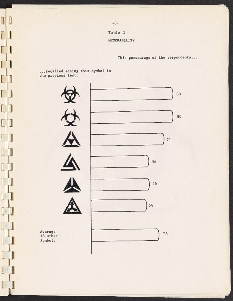 To test their designs, the researchers showed 60 symbols to 300 participants across 25 American cities. Six were newly designed biohazard icons; the other eighteen were well-known logos and symbols, including the Shell Oil emblem, the Texaco star, the Red Cross, and even a swastika. Participants first guessed the meaning of each symbol, giving researchers a “meaningfulness score.” A week later they were shown the symbols again, along with several new ones, and asked which they remembered.