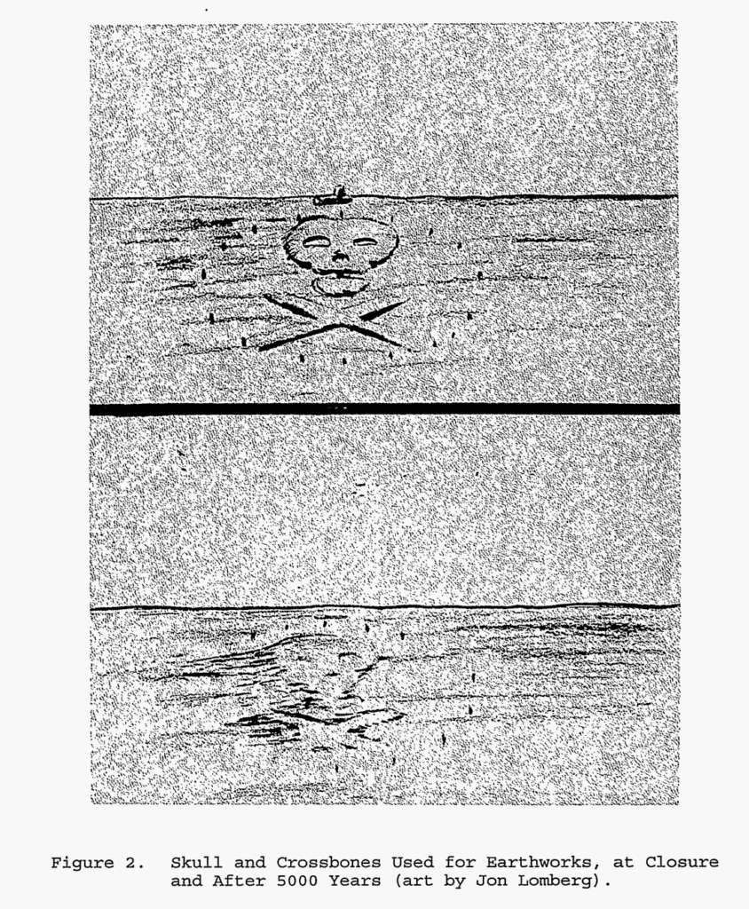 Yet even apparently universal symbols carry hidden complications. According to Peter Galison, the danger of relying on artistic or symbolic language is that meaning can shift dramatically over time. A symbol that seems obvious today may not remain so indefinitely. The skull-and-crossbones pictogram, now widely understood to signify death or poison, has not always carried that meaning. In earlier European traditions, particularly in alchemy and Christian iconography, the skull represented Adam, while the crossed bones symbolized the promise of resurrection. Over just a few centuries, the symbol evolved from one associated with rebirth to one that signals mortal danger, an example of how easily visual language can drift as cultures change. The real solution will likely be much more mundane and bureaucratic.