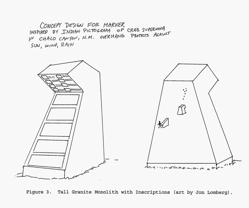 Others have speculated that the monumental designs revealed a more human motivation. Some participants in the project may have been drawn to the opportunity to create something that could outlast civilization itself, and thus their judgement may have been skewed. Andrew Moisey, continuing his criticisms of the project, notes a possible explanation. “Perhaps they could not resist the opportunity it offered for a kind of immortality,” he writes. “This would be an understandable response from a group asked to devise the final communication of the first truly Promethean civilization.”