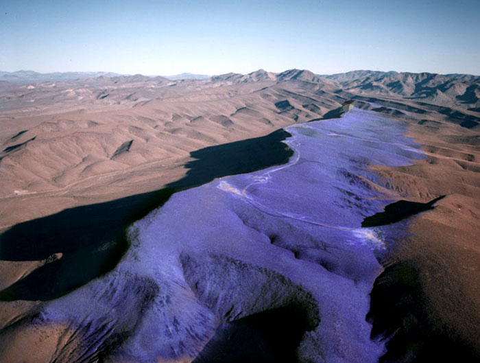 The winning proposal, Blue Yucca Ridge by Ashok Sukumaran, suggested turning the landscape itself into a warning. His idea was to genetically engineer the desert’s native yucca plants so that they would glow cobalt blue, with the intensity of the color varying according to radiation levels. Planted across a mile-long stretch of the Yucca Mountain ridge, the modified plants would form a living warning system, self-replicating markers whose unusual color would signal that something unnatural lay beneath the ground. As Sukumaran described it, the plants would become “a landscape intervention … a marker for other mutants buried below,” with their genetic code carrying an embedded warning across generations.