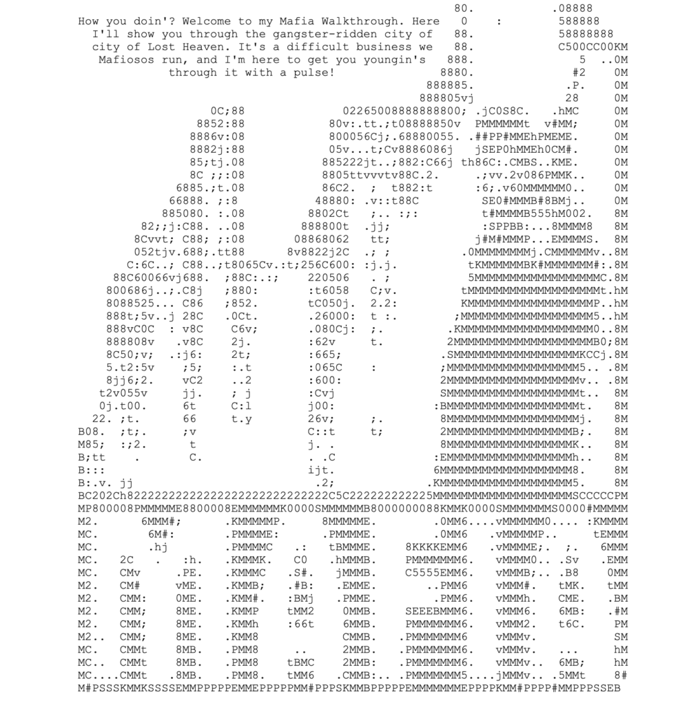 In which we rediscover the overlooked trend of ASCII art hidden inside fan-made video game guides from decades ago, created at a time when just including screenshots was not an option in the era of dial-up connections.