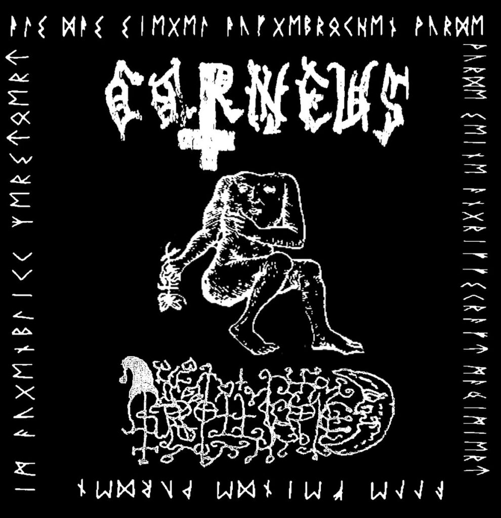 Collaborative projects also appear frequently. Khtoninen Luomus, the split release between Friedhofsbewohner and Hirven Verenimijä features the familiar cheap keyboard textures and down-pitched MIDI organs typical of the genre while drawing heavily on Finnish folklore. The album was issued through the Russian-based label UralPsychedelicRawTerror, which described the music in characteristically surreal terms: “From the depths of the Ural Mountains, from the pine forests of the Earth’s Belt, lost in time and space, this release has been brought to the attention of the Shudras and Vaishyas by your gracious hosts… Forged by enlightened fellow gnomes, it presents a half-hour of raw Keller Synth in the finest traditions of the genre. Two of the twelve compositions will pierce your dim-witted heads with rhythmic waves of good old Tänzelcore. Thirty minutes of melancholy and authentic Ural chthonicity.”