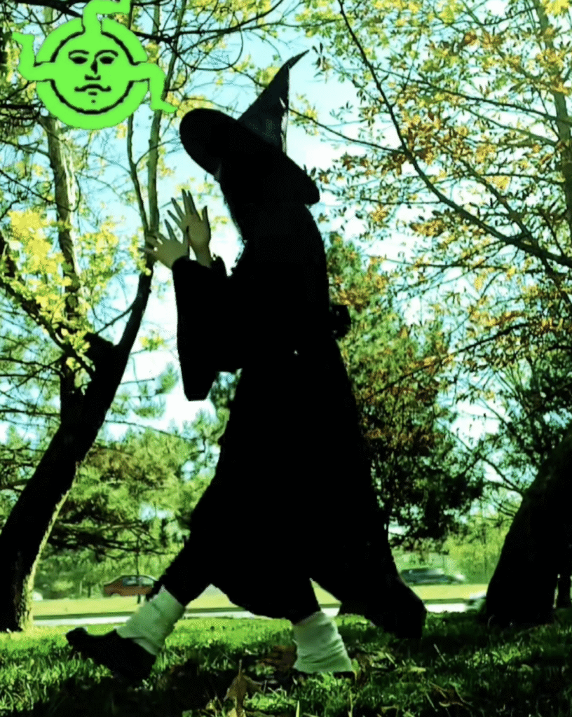 This visual meme has crossed over into video culture as well. On platforms such as TikTok, participants sometimes record themselves imitating Keller Synth imagery: prancing through forests, wearing pointed witch hats, or occasionally dressed in flecktarn, the distinctive camouflage pattern used by the German military. The Triskelion is often featured prominently in these videos as an unofficial symbol of the scene. The cohesive aesthetic of these videos helped transform Keller Synth from a niche musical experiment into a recognizable internet aesthetic during the early 2020s.