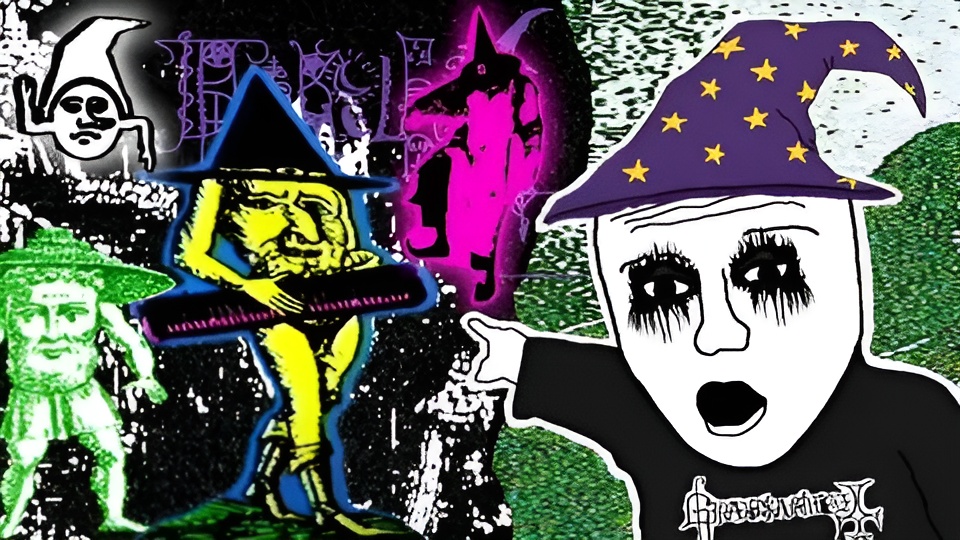 At first glance it resembles the cover of a low-budget black metal cassette, down to the handwritten lettering. But when the music starts, the sound is not all what you expected. You still hear the blast beats and distorted guitars, but there’s serious bass, and a pounding gabber rhythm drives the track forward. Then another detail becomes obvious: the supposed metalhead is wearing a pointed witch’s hat, a decidedly unserious choice of attire. You scroll through the comments under the video and most are written in German. Many consist of a single word: “knallt,” the German slang equivalent for “this bangs.” You have stumbled onto Keller Synth.